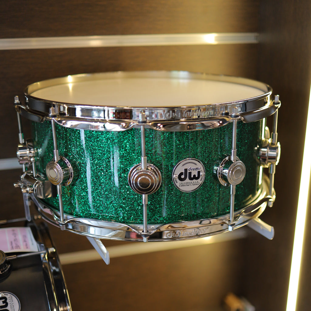DW USA Collectors Series 6x14" FinishPly Green Glass Snare Drum, Nickel HW